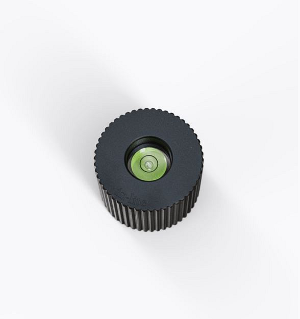 Accessoire LEVEL is speciaal ontworpen voor staande lampen. Het helpt bij het perfect recht en uitgelijnd installeren van deze armaturen. Het bevat, net als een waterpas, een libelle. Wanneer de luchtbel zich binnen de indicatiecirkel bevindt, betekent dit dat het oppervlak waterpas is.