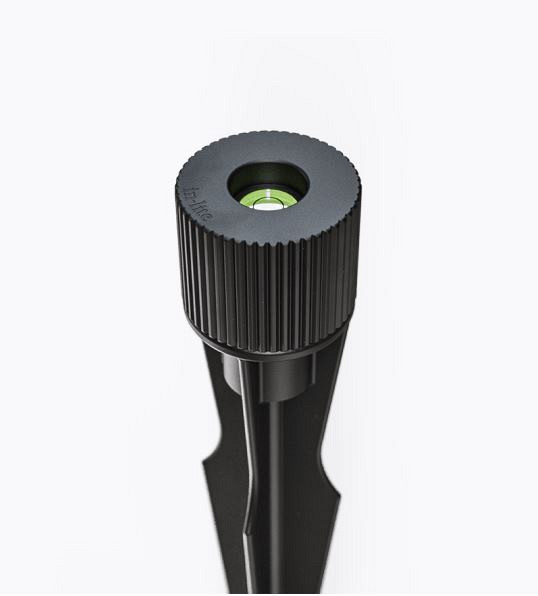 LEVEL past precies op een in-lite grondpen en kan er eenvoudig op worden geplaatst en weer afgenomen. Maak harde grond zo veel mogelijk los. Sla de grondpen met de LEVEL erop in de grond, haal de LEVEL eraf, plaats het armatuur erop en het staat gegarandeerd recht.