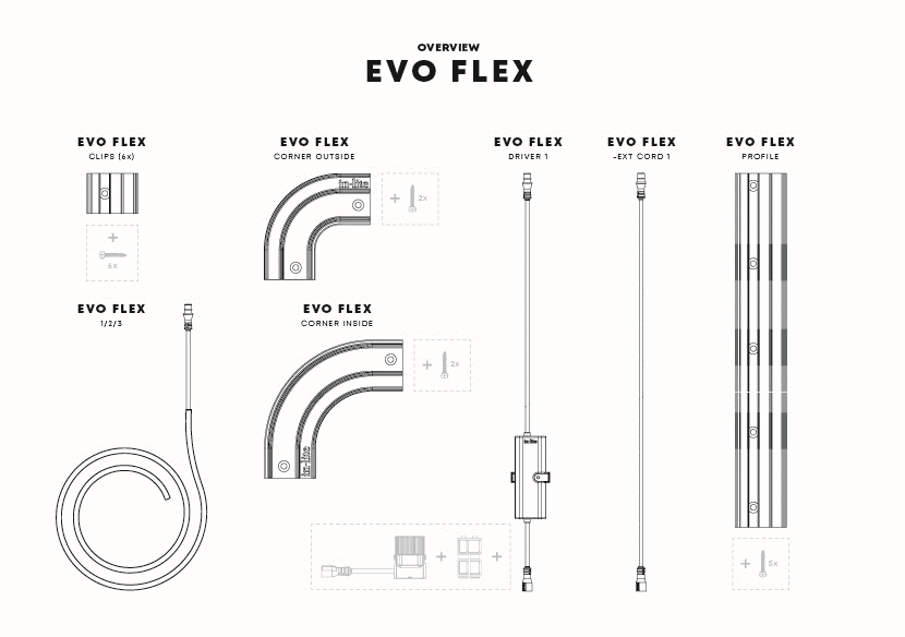 De driver kan samen met EVO Flex (1, 2 of 3) worden verwerkt in het EVO Flex Profile (apart verkrijgbaar). Hierdoor ontstaat een strakke en professionele afwerking van je lijnverlichting. Gebruik bij installatie altijd de bijbehorende EVO Flex accessoires voor het beste resultaat.